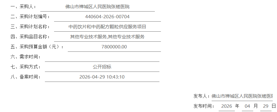 【佛山市禅城区人民医院】广东省佛山市禅城区人民医院张槎医院中药饮片和中药配方颗粒供应服务项目