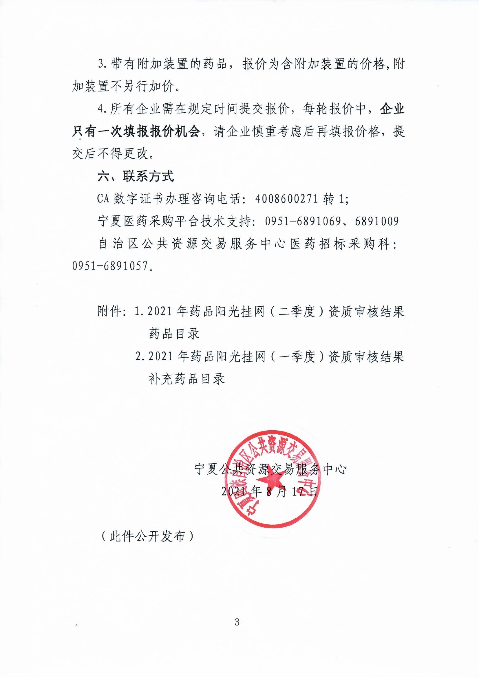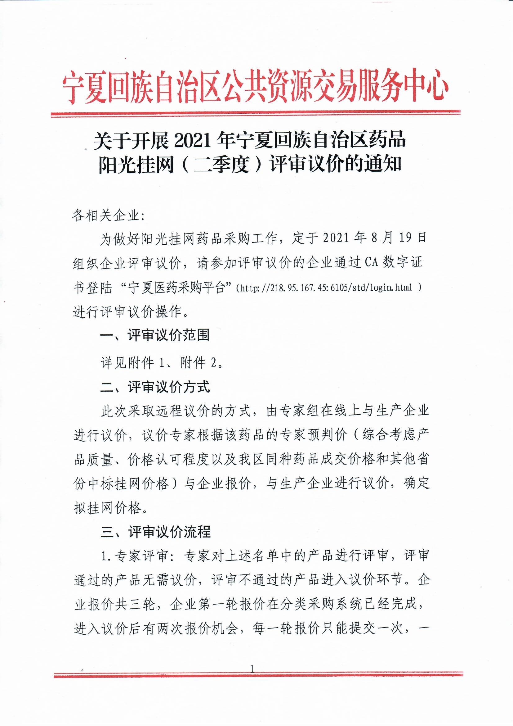 【宁夏】2021年宁夏自治区关于开展2021年宁夏回族自治区药品阳光挂网(二季度)评审议价的通知