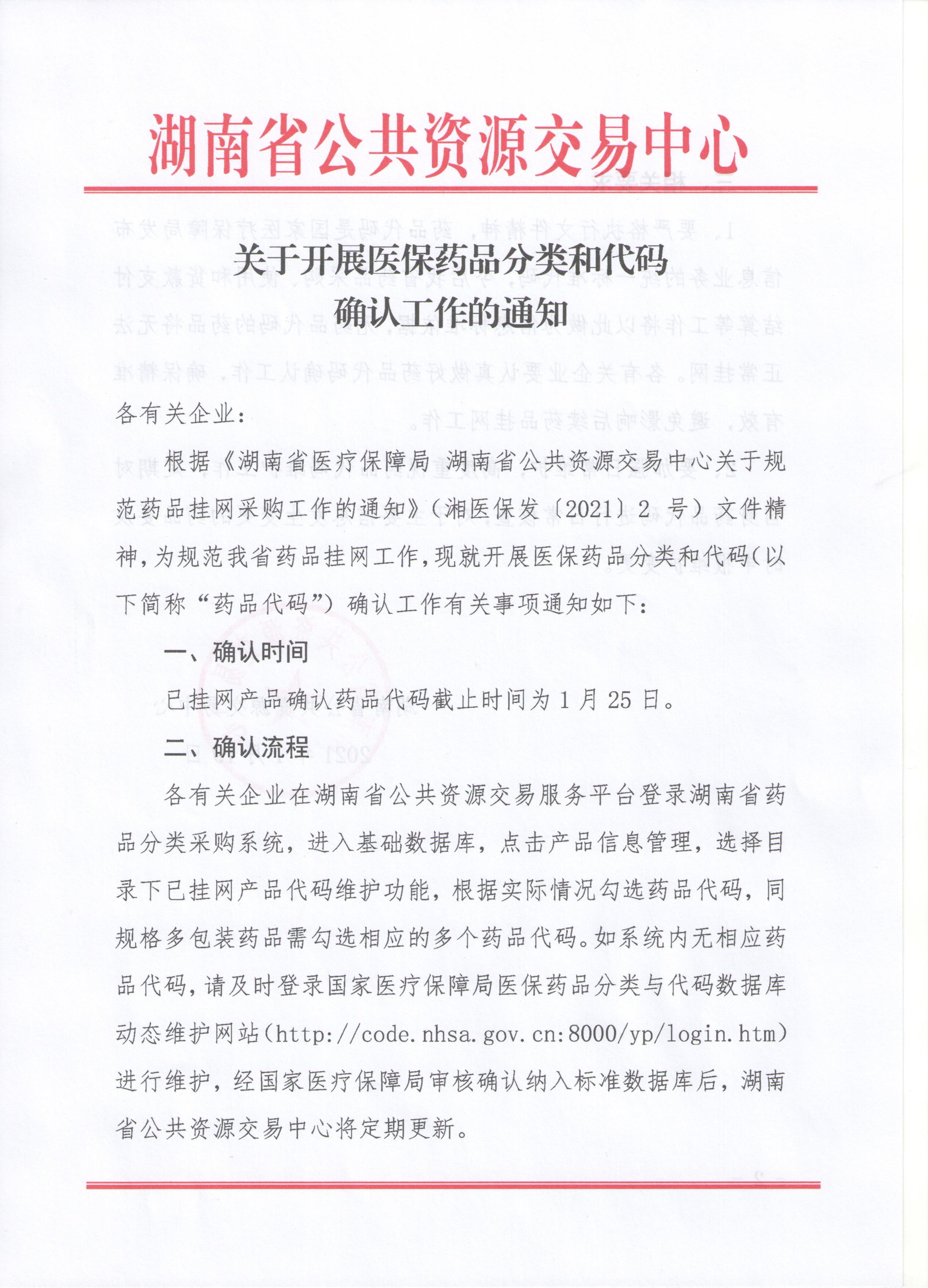 【湖南】2021年湖南省关于开展医保药品分类和代码确认工作的通知