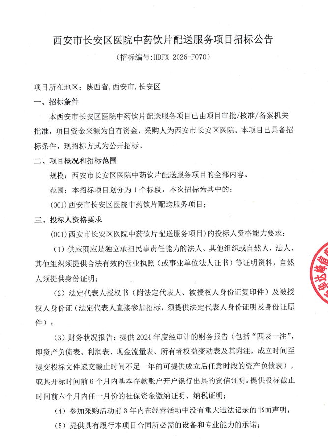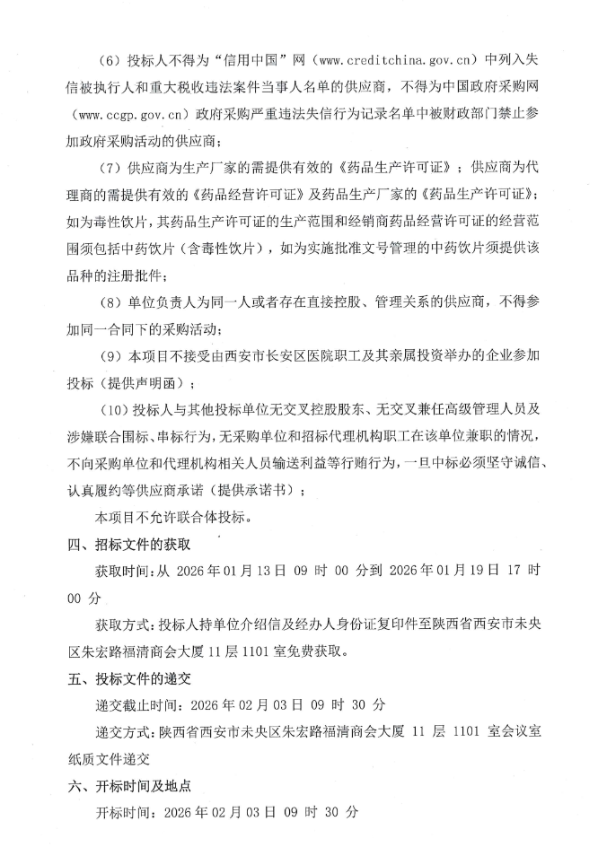 【西安市长安区医院】陕西省西安市长安区医院中药饮片配送服务项目招标公告