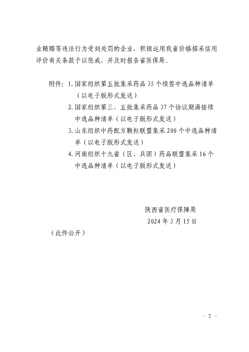【陕西】陕西省医疗保障局关于做好国家组织第三五批集采部分药品续签接续和山东中药配方颗粒河南十九省药品联盟集采中选结果执行工作的通知
