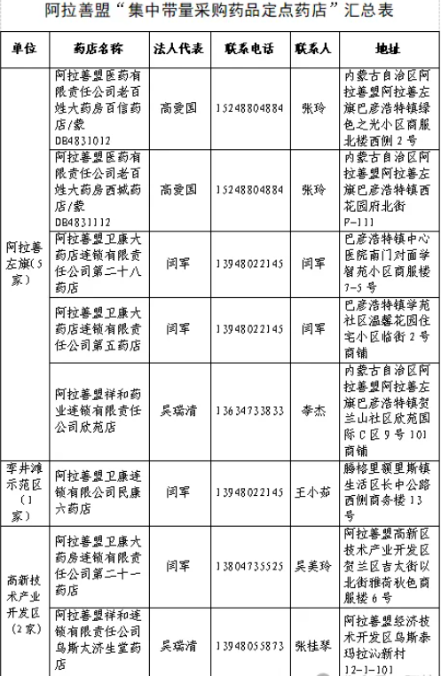 【阿拉善】阿拉善盟医疗保障局关于“集中带量采购药品定点药店”遴选结果的公示