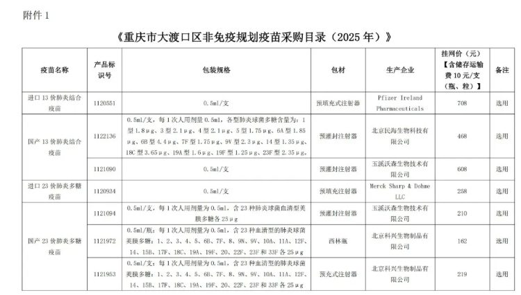 【重庆】2025年重庆市大渡口区非免疫规划疫苗遴选结果公示