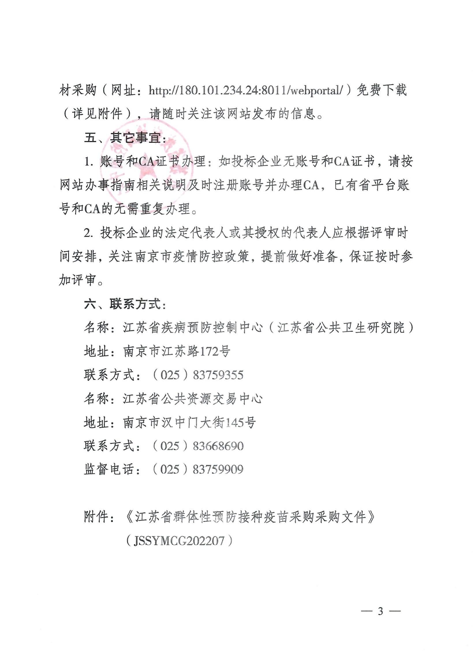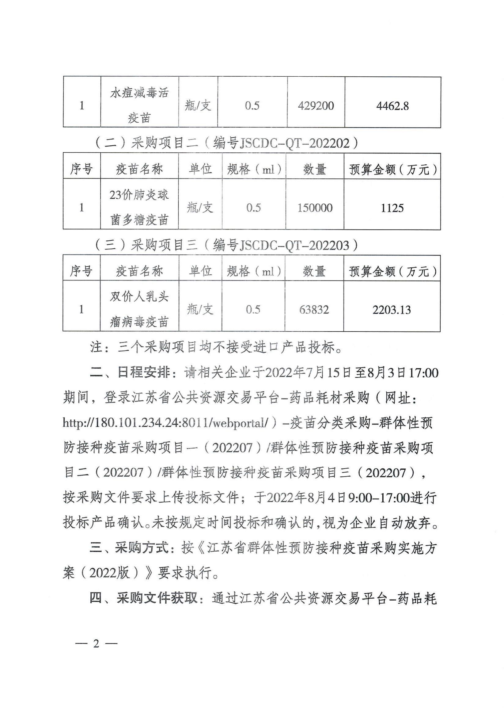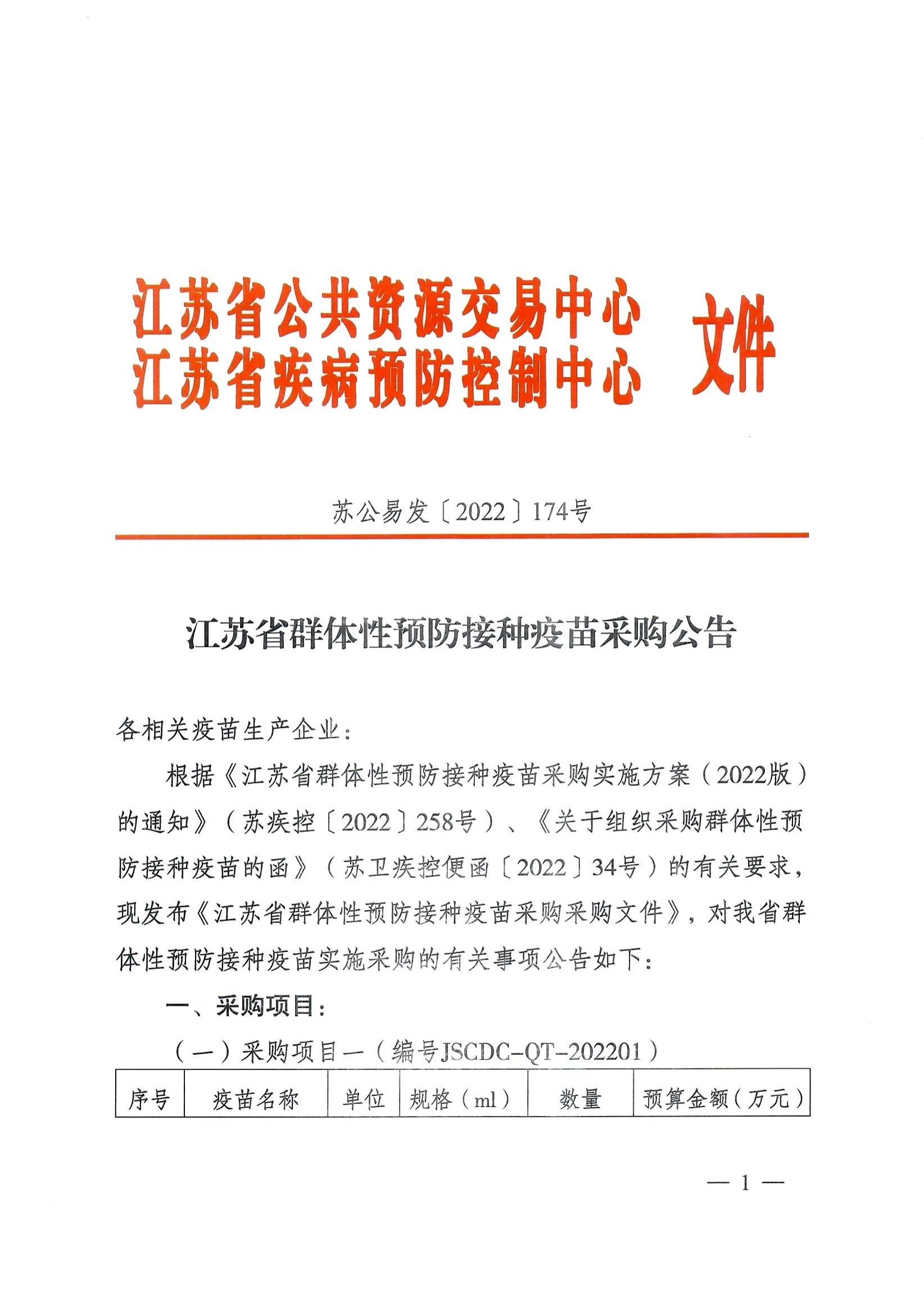 【江苏】江苏省群体性预防接种疫苗采购公告