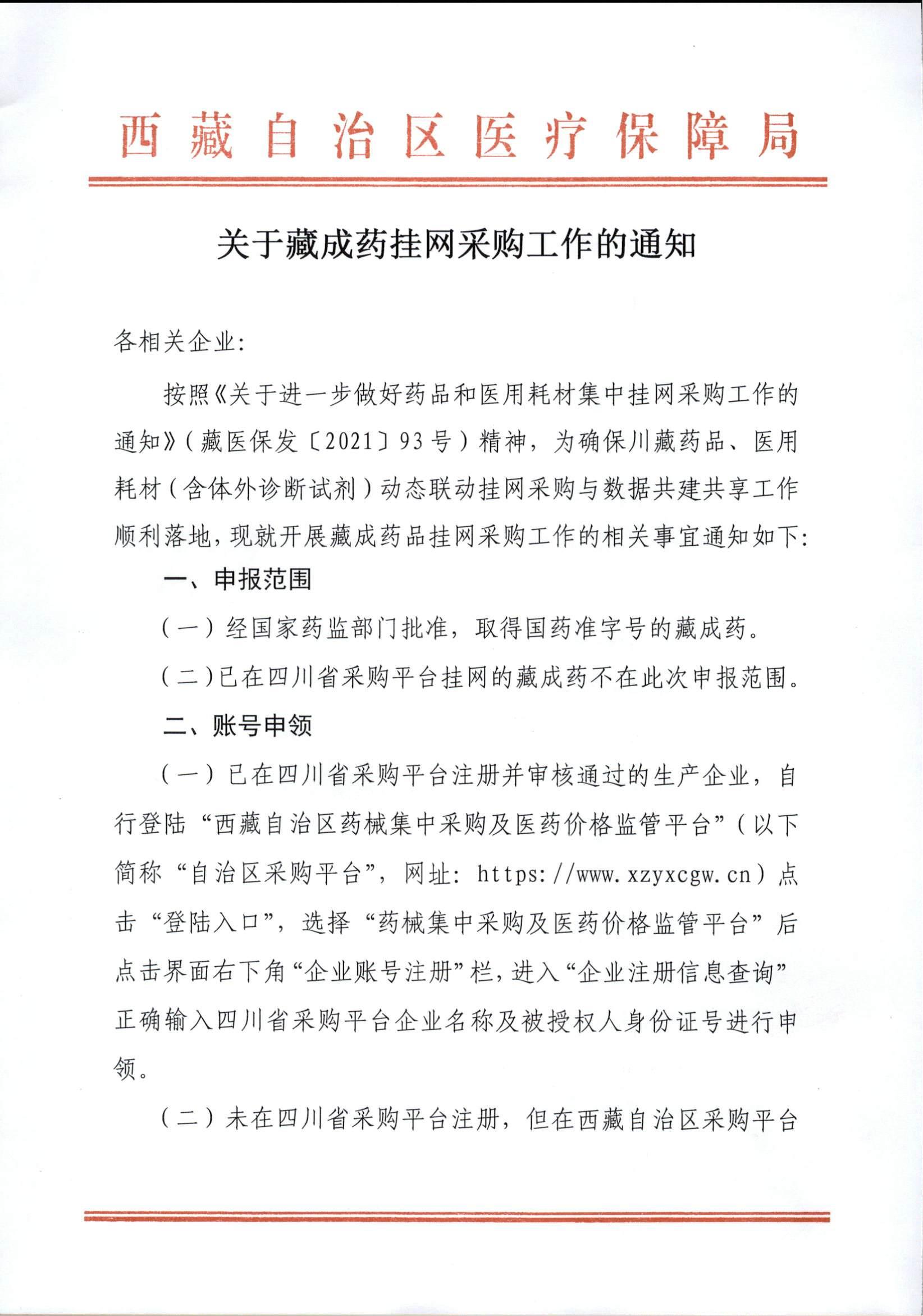 【西藏】西藏自治区关于藏成药挂网采购工作的通知