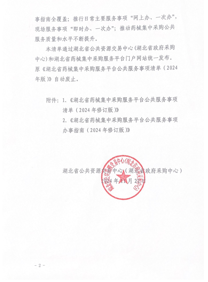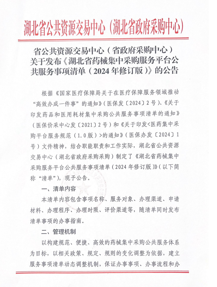 【湖北】湖北省药械集中采购服务平台公共服务事项清单(2024年修订版)