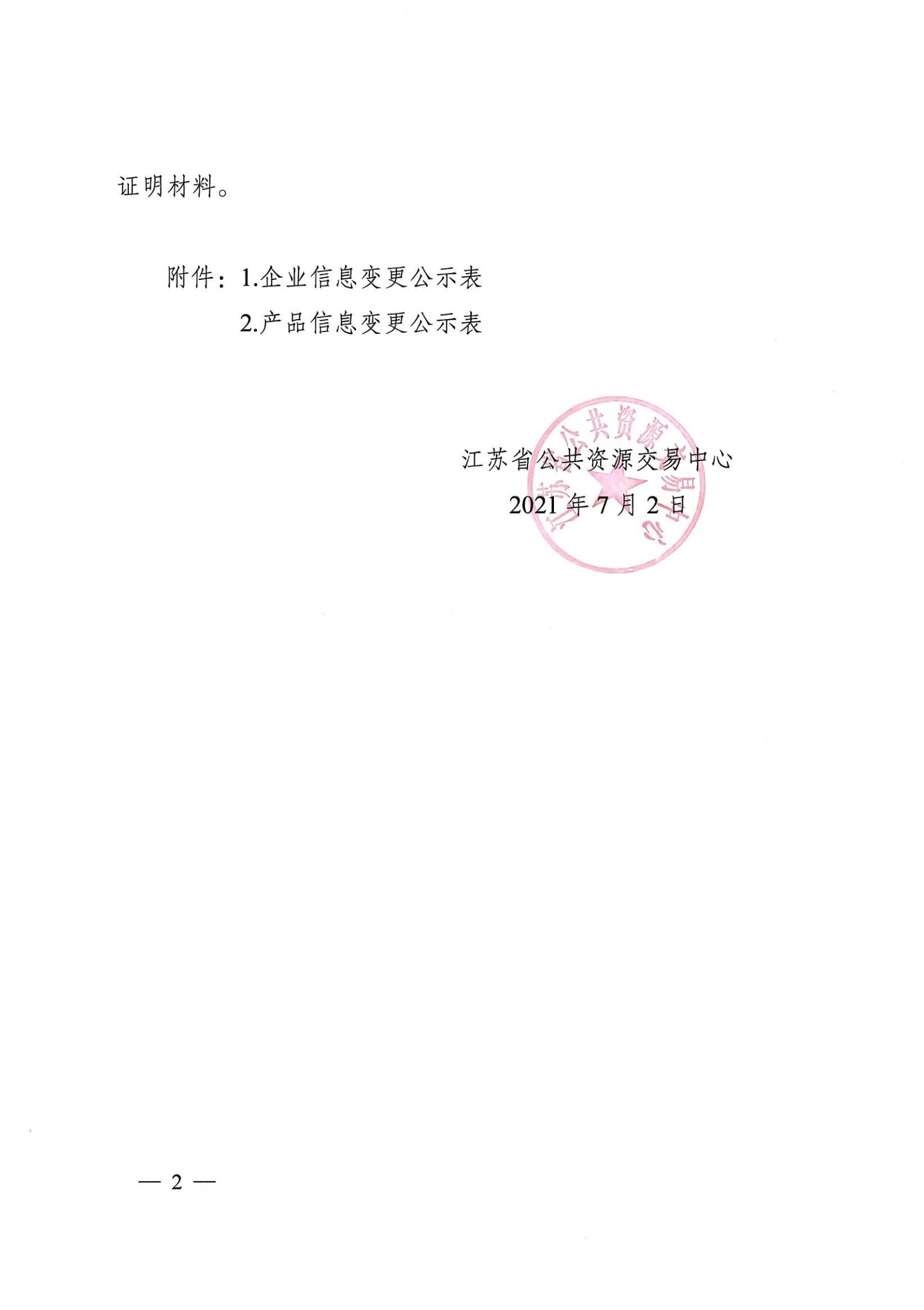 【江苏】2021年江苏省公共资源交易中心关于公示部分药品阳光挂网企业和产品信息变更的通知 苏公易发[2021]107号