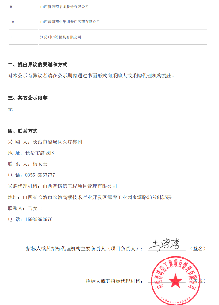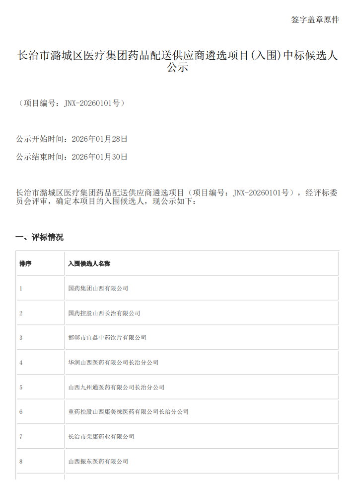 【长治市潞城区医疗集团】山西省长治市潞城区医疗集团药品配送供应商遴选项目(入围)中标候选人公示