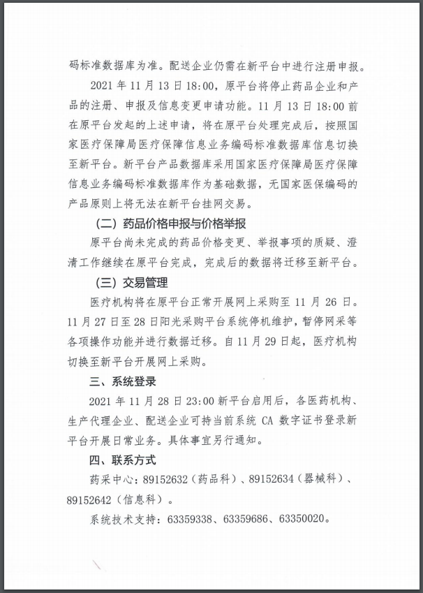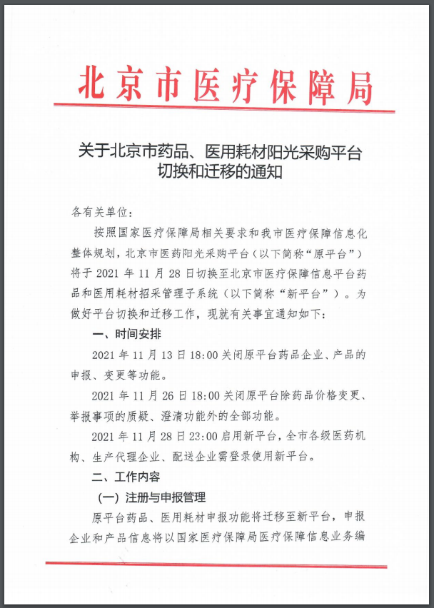 【北京】2021年北京市关于北京市药品、医用耗材阳光采购平台切换和迁移的通知