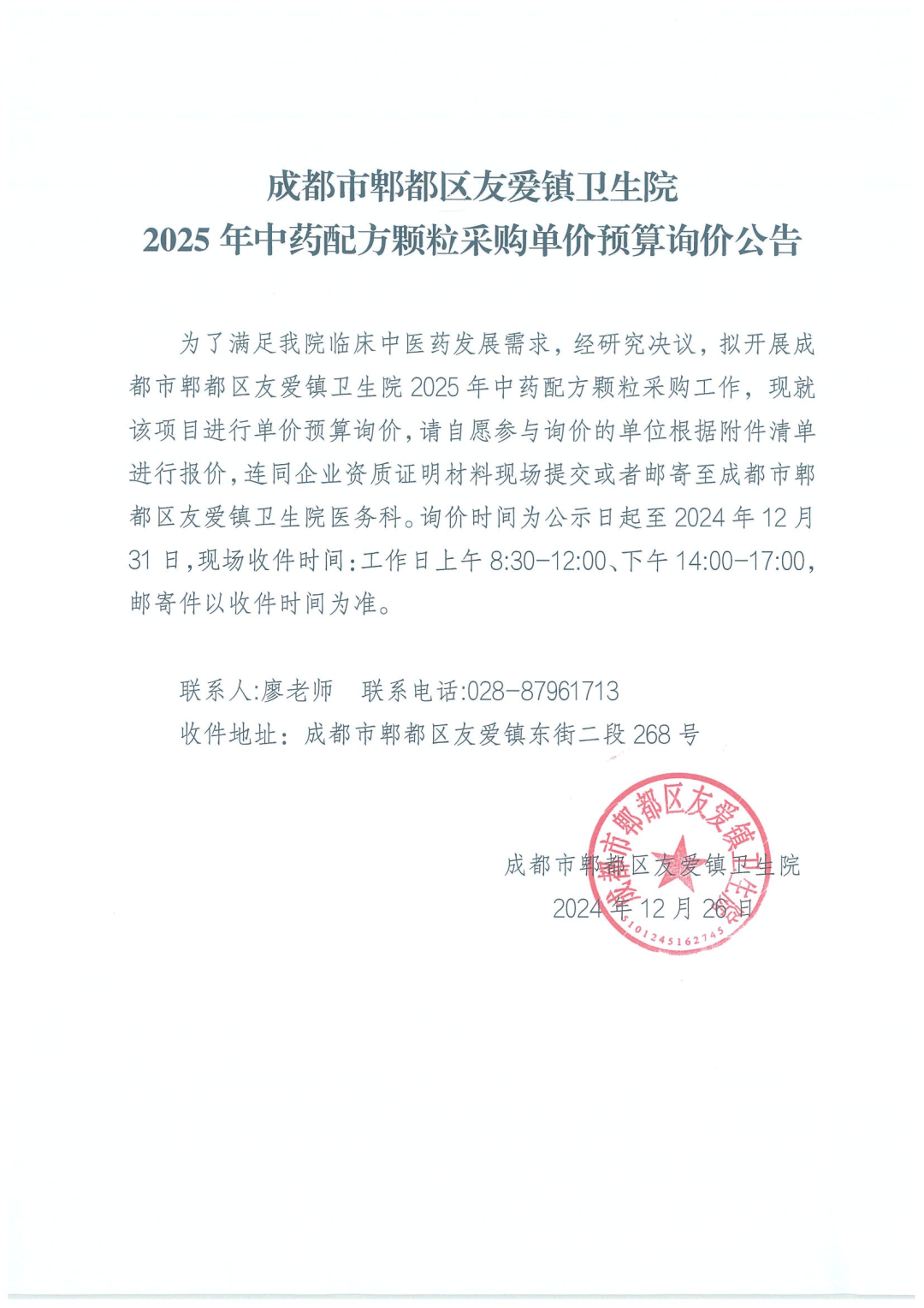 【成都市郫都区友爱镇卫生院】四川省成都市郫都区友爱镇卫生院2025年中药配方颗粒采购单价预算询价公告