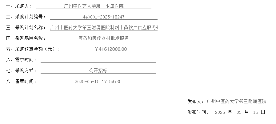 【广州中医药大学第三附属医院】广东省广州中医药大学第三附属医院制剂中药饮片供应服务采购项目