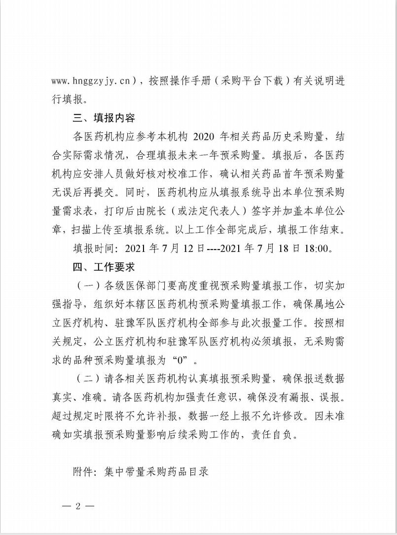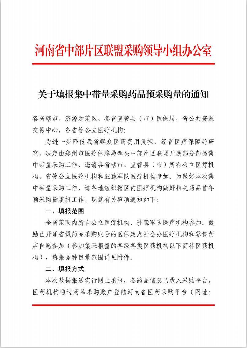 【河南】2021年河南省关于填报集中带量采购药品预采购量的通知