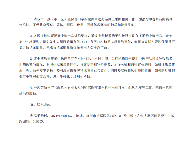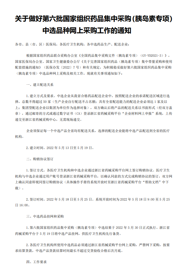 【宁波】关于做好第六批国家组织药品集中采购(胰岛素专项)中选品种网上采购工作的通知
