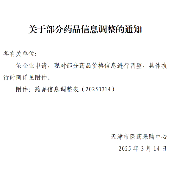 【天津】天津市关于部分药品信息调整的通知(20250314)