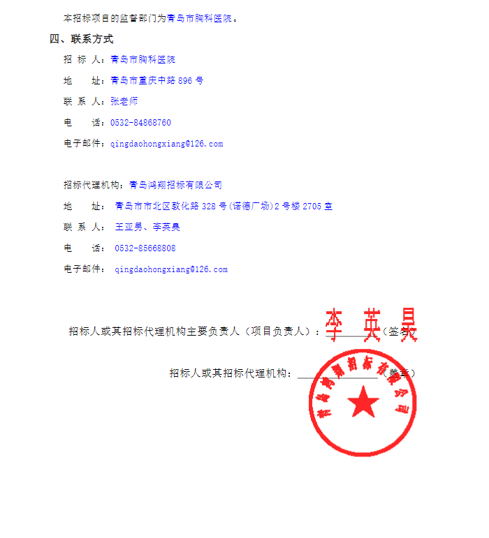 所属项目:山东省青岛市胸科医院院标