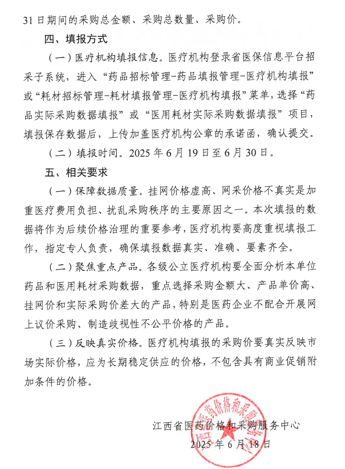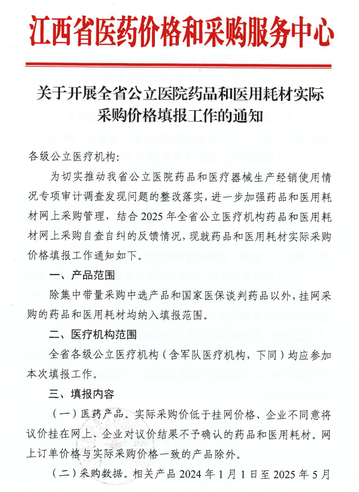 【江西】关于开展全省公立医院药品和医用耗材实际采购价格填报工作的通知