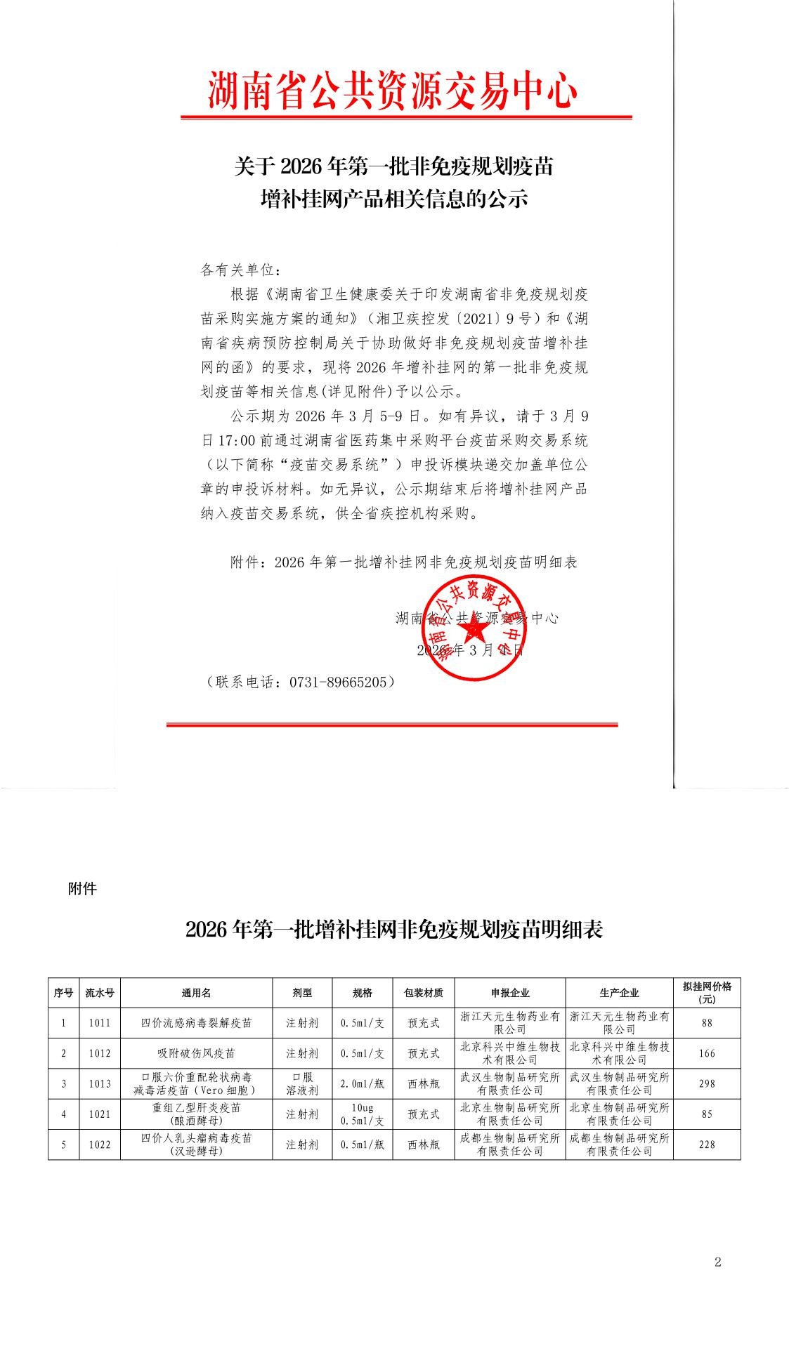 【湖南】关于2026年第一批非免疫规划疫苗增补挂网产品相关信息的公示
