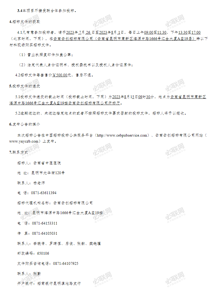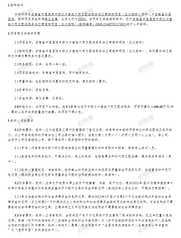 【云南省中医医院】云南省中医医院中药饮片智能代煎及配送服务供应商招标项目(三次招标)招标公告