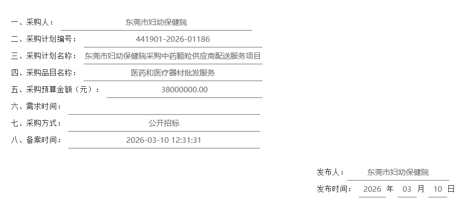 【东莞市妇幼保健院】广东省东莞市妇幼保健院采购中药颗粒供应商配送服务项目