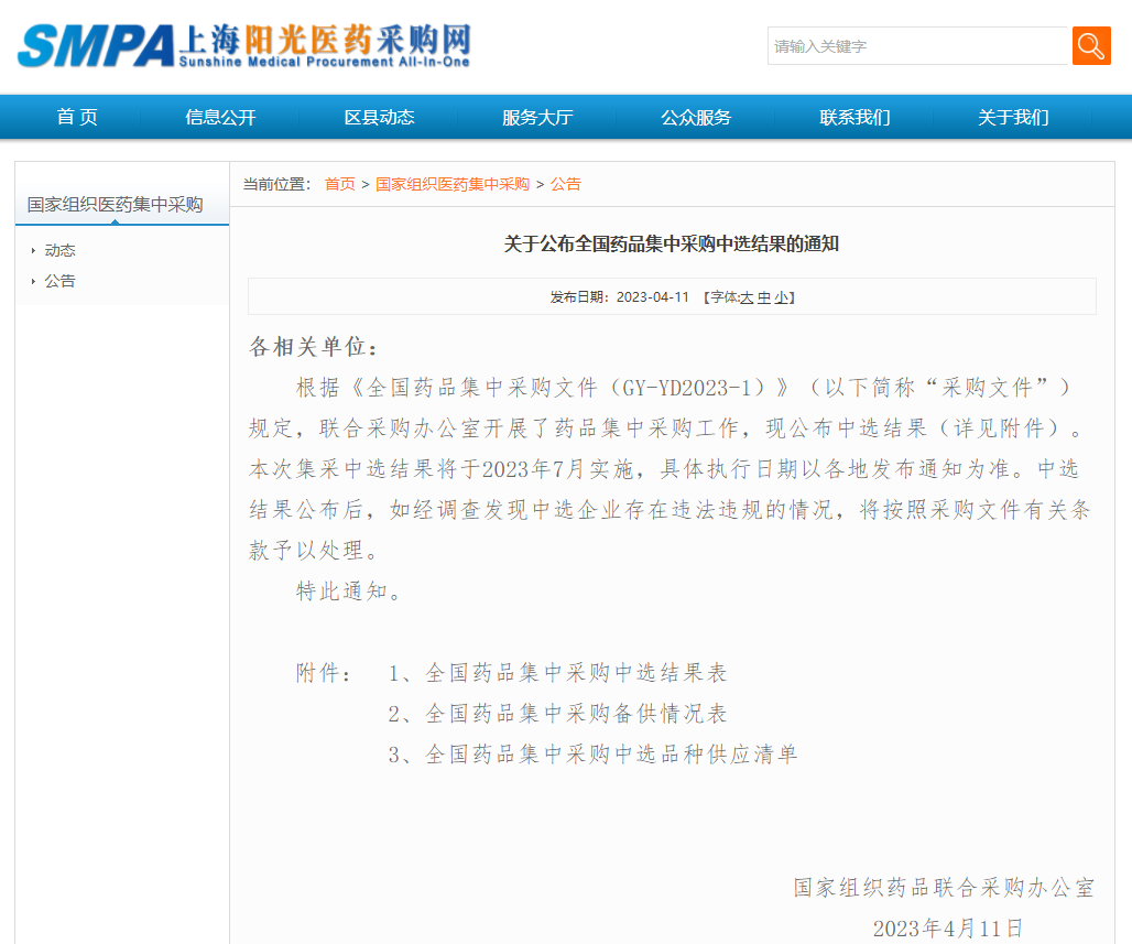 附:关于公布全国药品集中采购中选结果的通知
