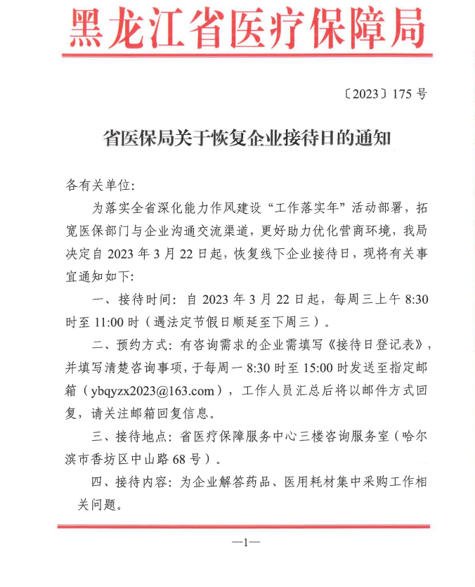为落实全省深化能力作风建设“工作落实年”活动部署,拓宽医保部门与企业沟通交流渠道,更好助力优化营商环境,我局决定自2023年3月22日起,恢复线下企业接待日,现将有关事宜通知如下:
