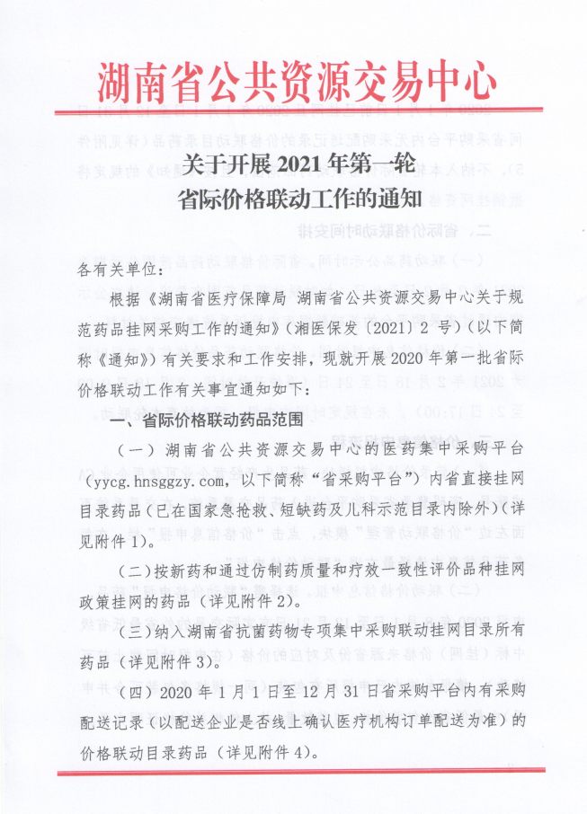 【湖南】2021年湖南省关于开展2021年第一轮省际价格联动工作的通知