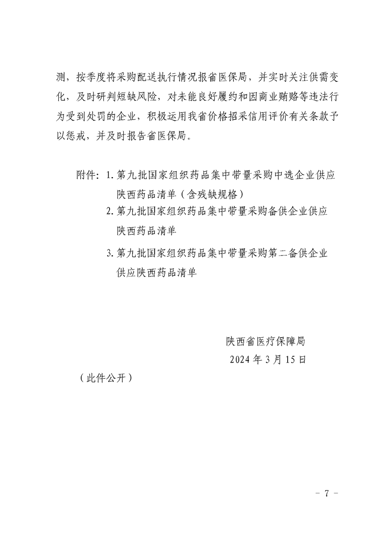 【咸阳】咸阳市医疗保障局关于转发《陕西省医疗保障局关于做好第九批国家组织药品集中带量采购和使用工作的通知》