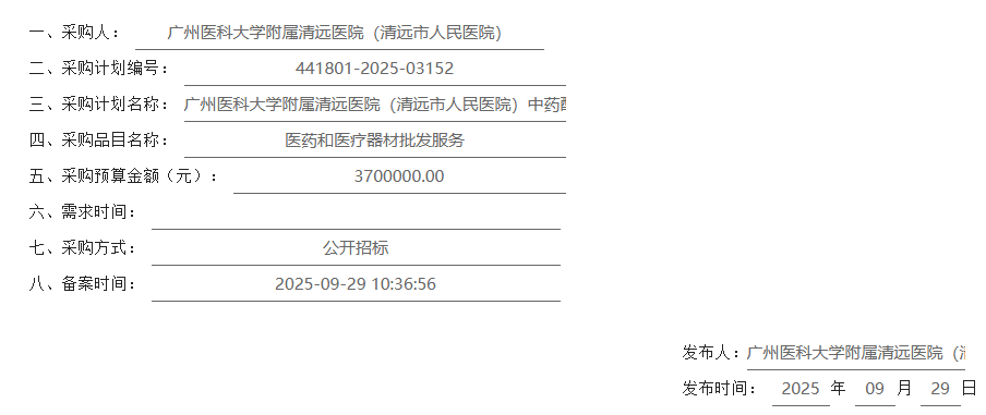 【广州医科大学附属清远医院】广东省广州医科大学附属清远医院(清远市人民医院)中药配方颗粒供应服务项目