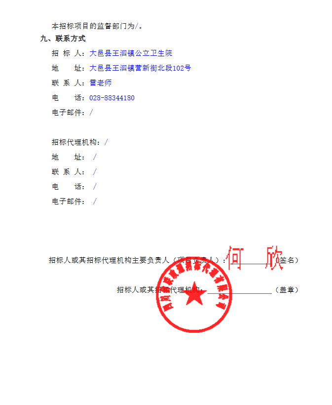 所属项目:四川省成都市大邑县王泗镇公立卫生