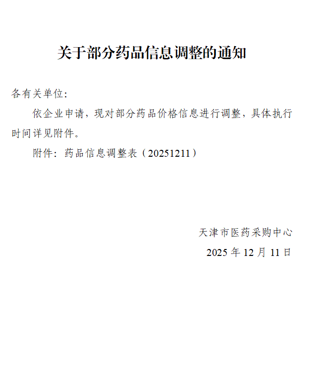 【天津】天津市关于部分药品信息调整的通知(20251211)