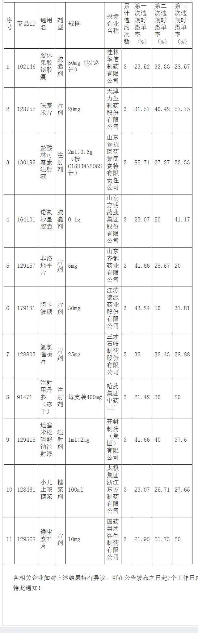 根据中心2019年3月29日发布的《关于云南省药品集中采购平台对药品生产企业和配送企业的考核标准》相关规定,下列药品未能保障供应及配送累计三次,系统将在2023年7月17日暂停挂网交易。 具体药品如下: