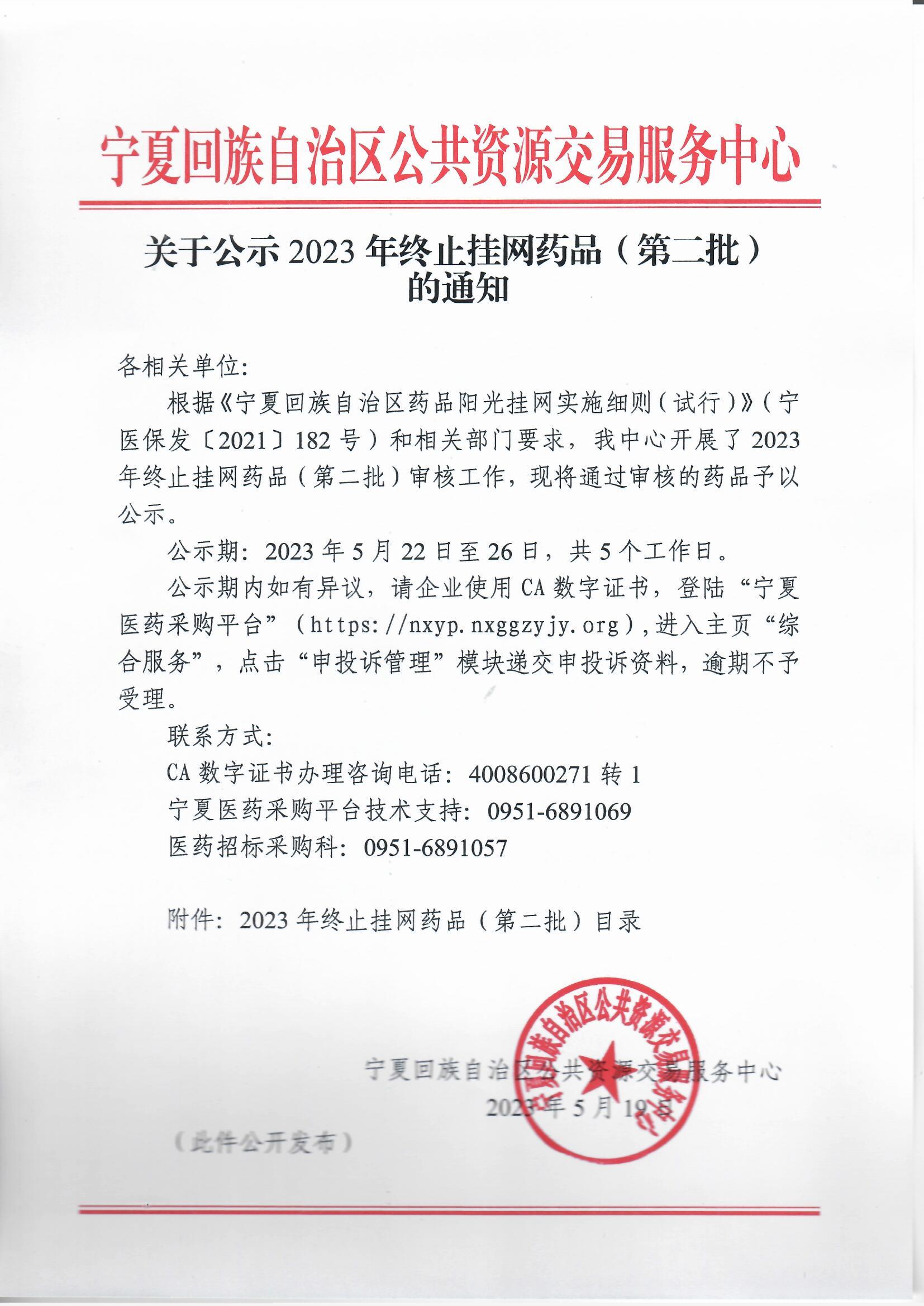 年终止挂网药品(第二批)审核工作,现将通过审核的药品予以公示。