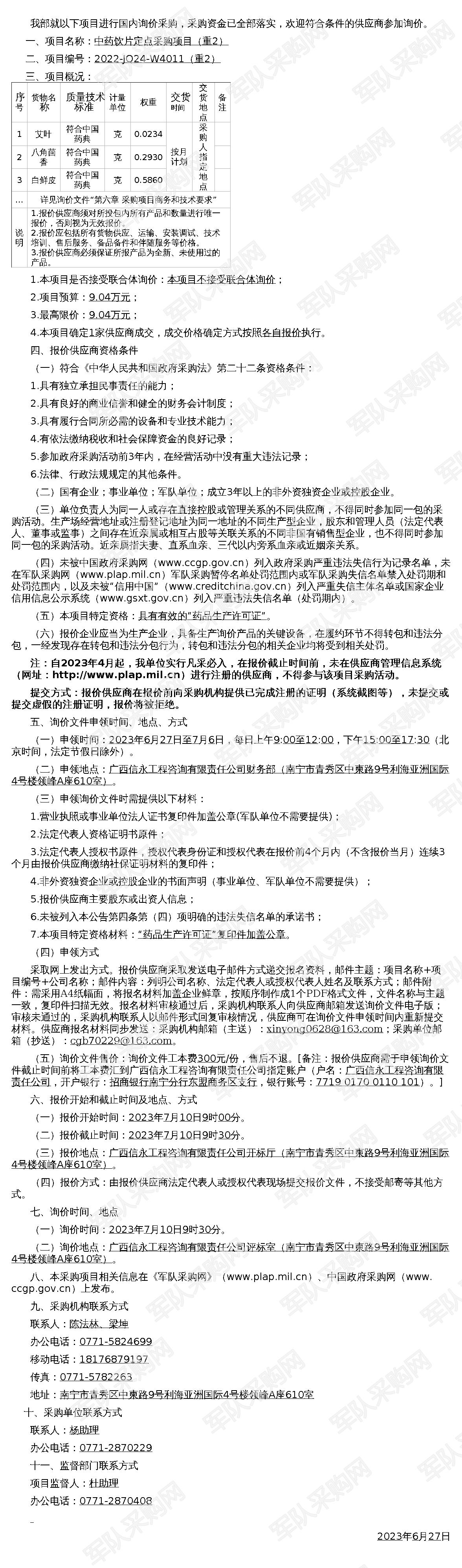 【南宁市某医院】军队采购网南宁市某医院中药饮片定点采购项目(重2)询价公告(项目编号:2022-JQ24-W4011(重2))