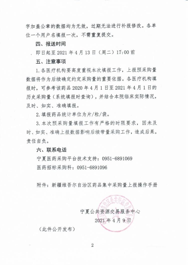 【宁夏】2021年宁夏自治区关于开展新疆维吾尔自治区药品集中采购相关数据报送工作的通知