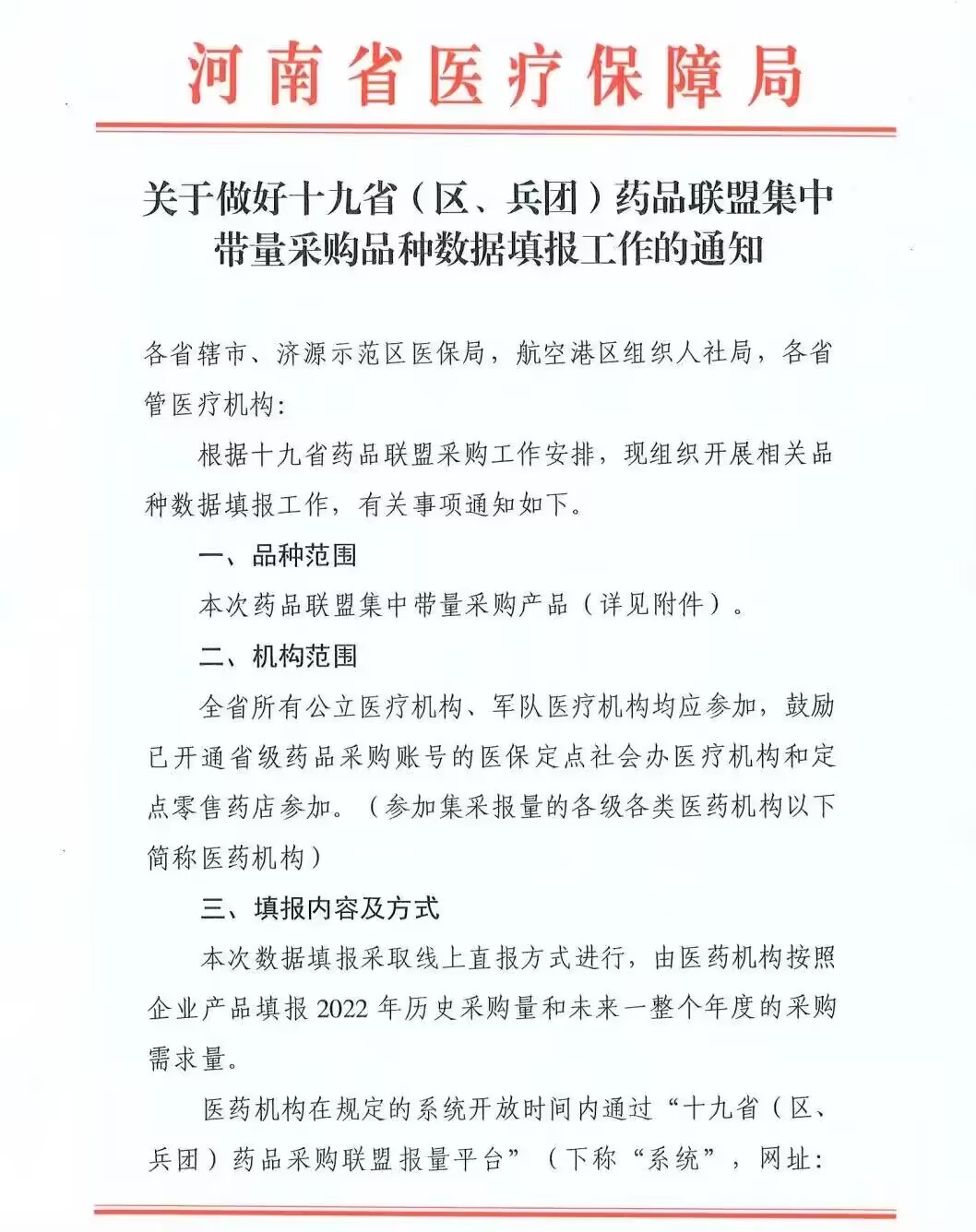 根据十九省药品联盟采购工作安排,现组织开展相关品种数据填报工作,有关事项通知如下。