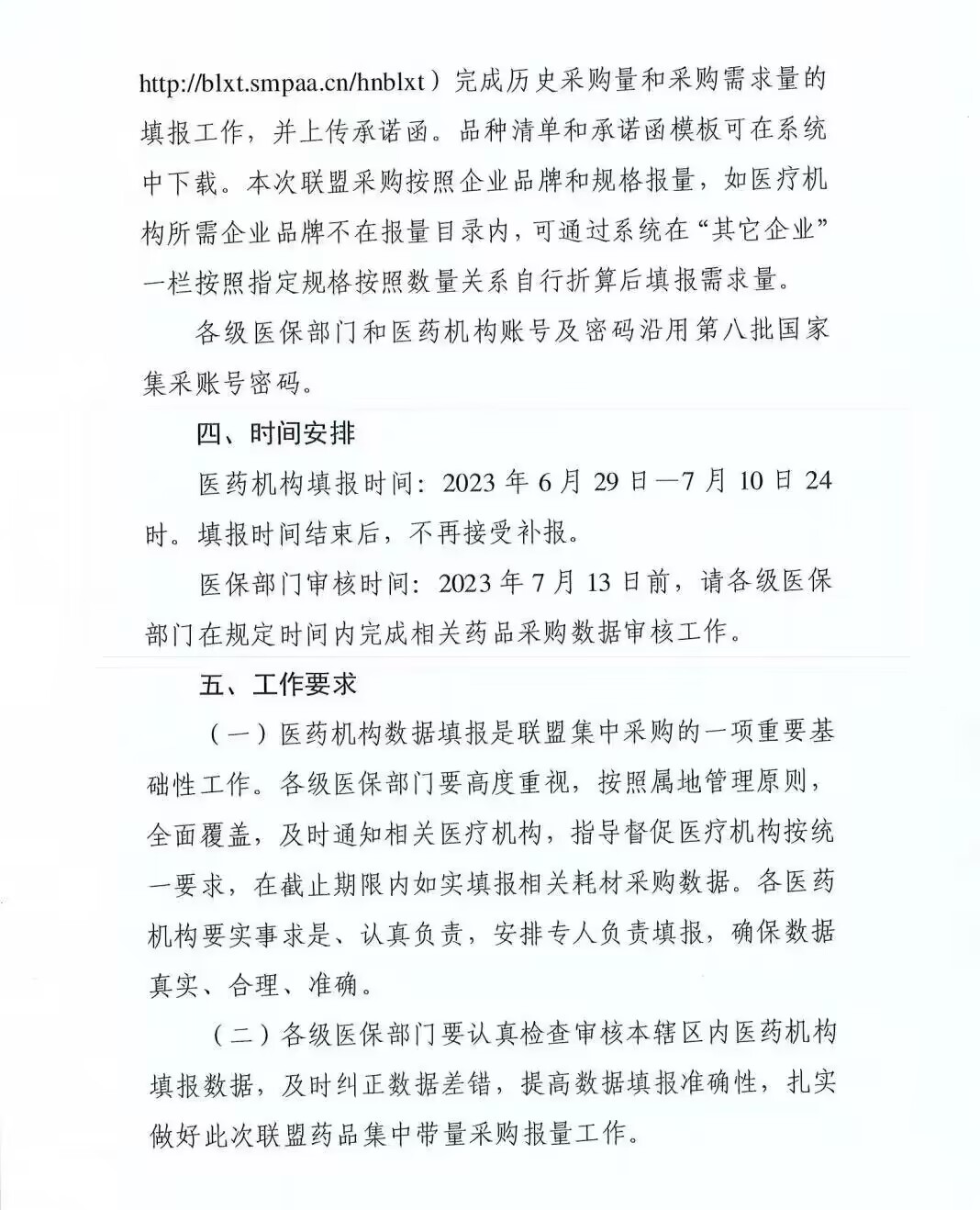 (一)医药机构数据填报是联盟集中采购的一项重要基础性工作。各级医保部门要高度重视,按照属地管理原则,全面覆盖,及时通知相关医疗机构,指导督促医疗机构按统一要求,在截止期限内如实填报相关耗材采购数据。各医药机构要实事求是、认真负责,安排专人负责填报,确保数据真实、合理、准确。