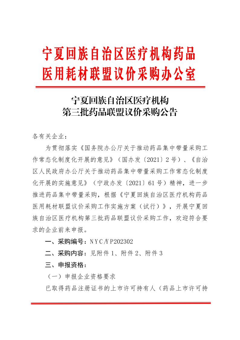 族自治区医疗机构第三批药品联盟议价采购工作,欢迎符合要求的企业前来申报。