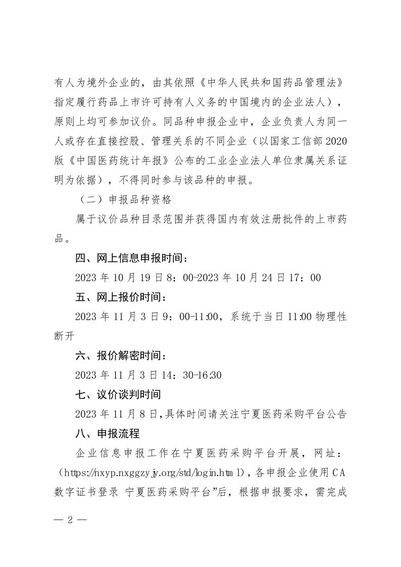 2.宁夏医药采购平台联盟议价产品申报系统将于2023年10月24日17时关闭,届时将不再受理信息维护。