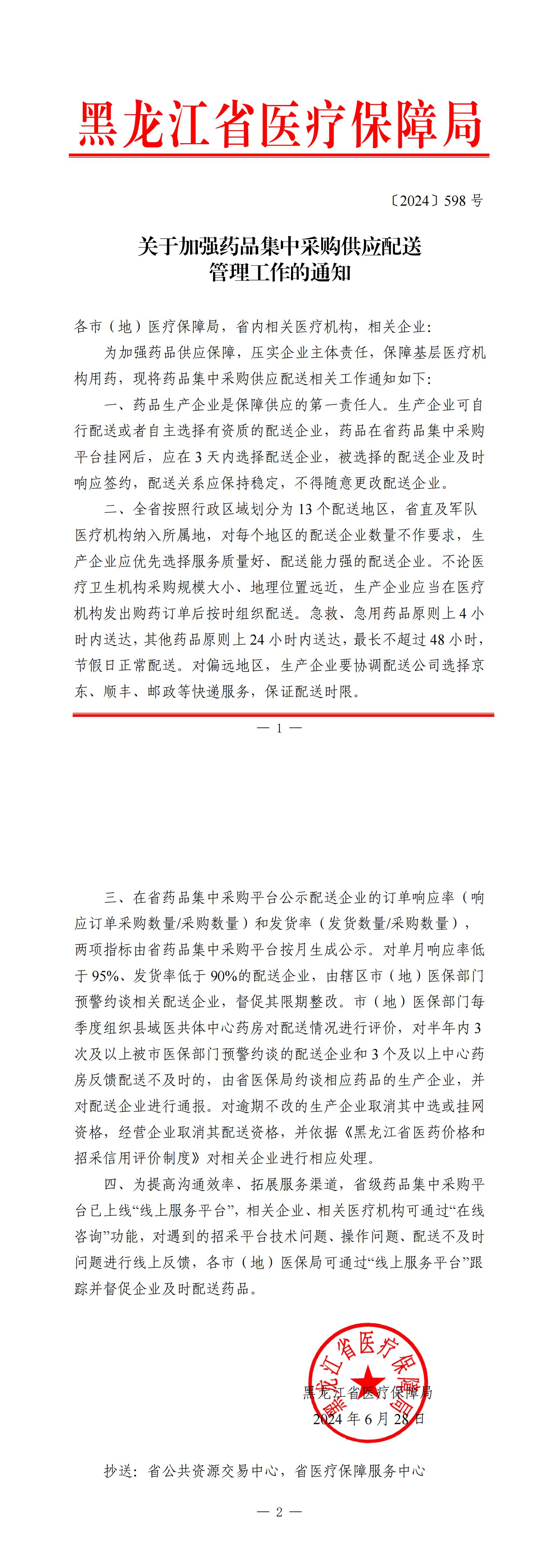 【黑龙江】黑龙江省关于加强药品集中采购供应配送管理工作的通知