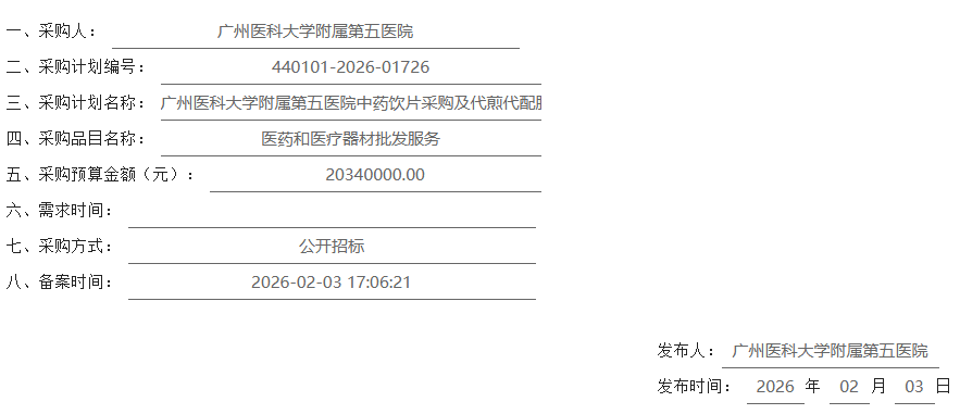 【广州医科大学附属第五医院】广东省广州医科大学附属第五医院中药饮片采购及代煎代配服务项目