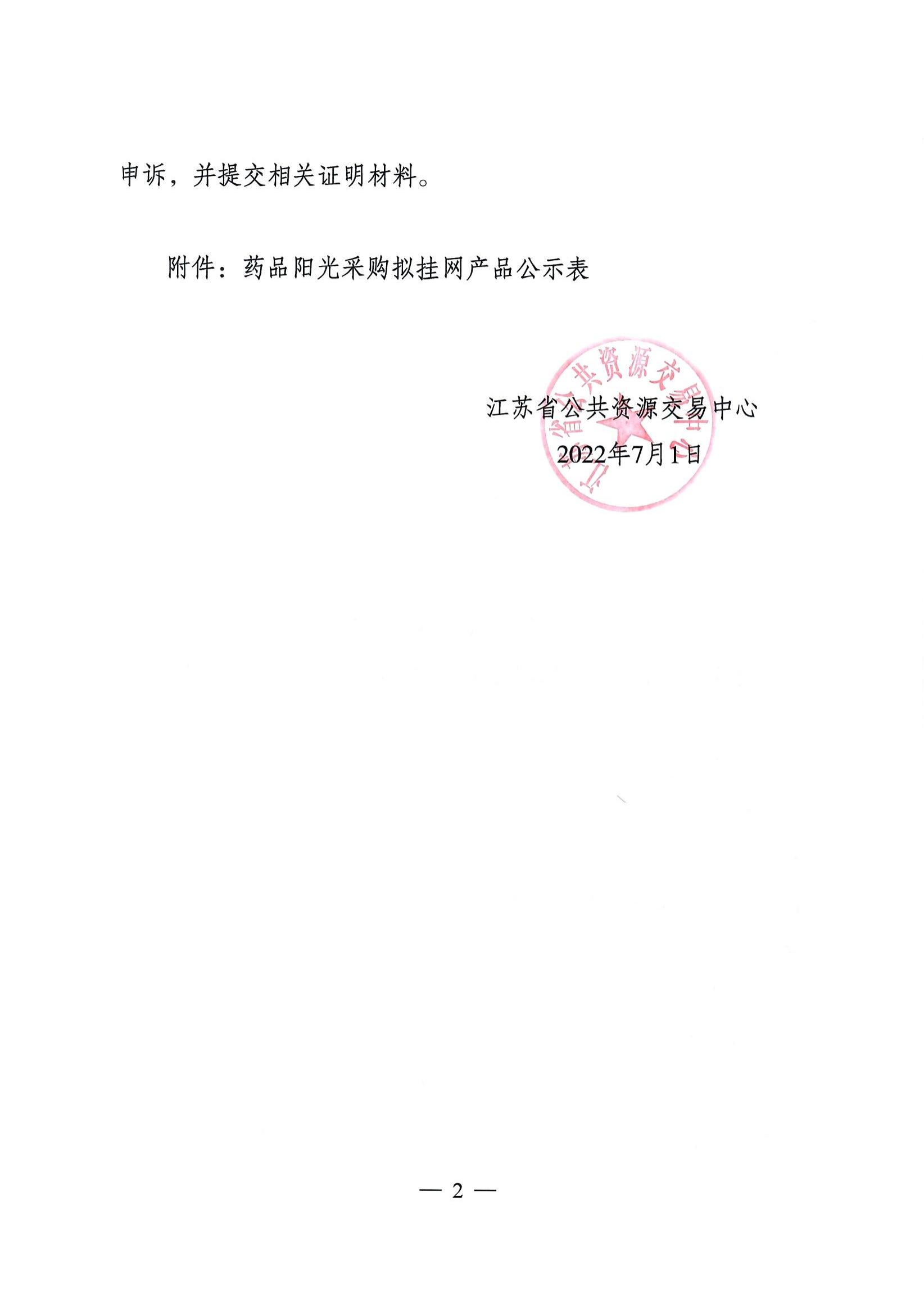 【江苏】江苏省省公共资源交易中心关于公示药品阳光采购拟挂网产品的通知