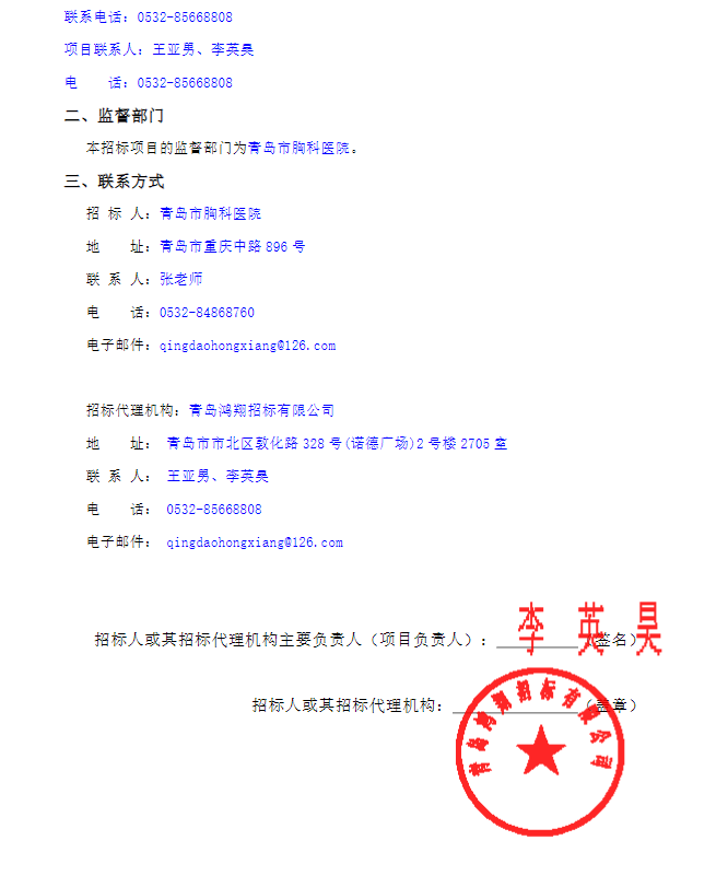 所属项目:山东省青岛市胸科医院院标