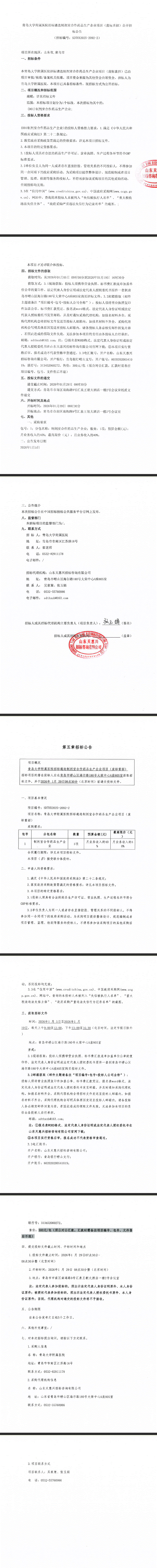 【青岛大学附属医院】山东省青岛大学附属医院招标遴选制剂室合作药品生产企业项目(废标重招)公开招标公告