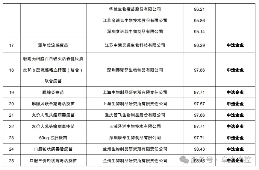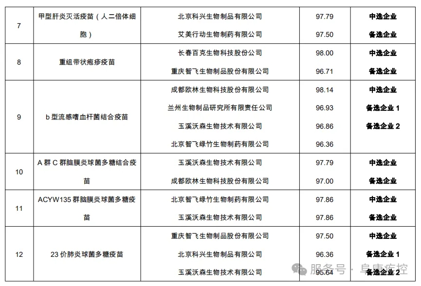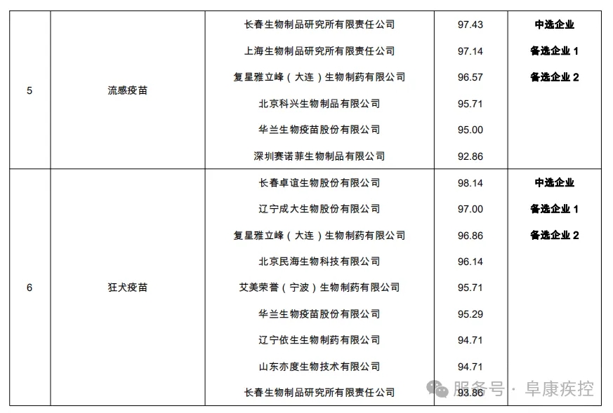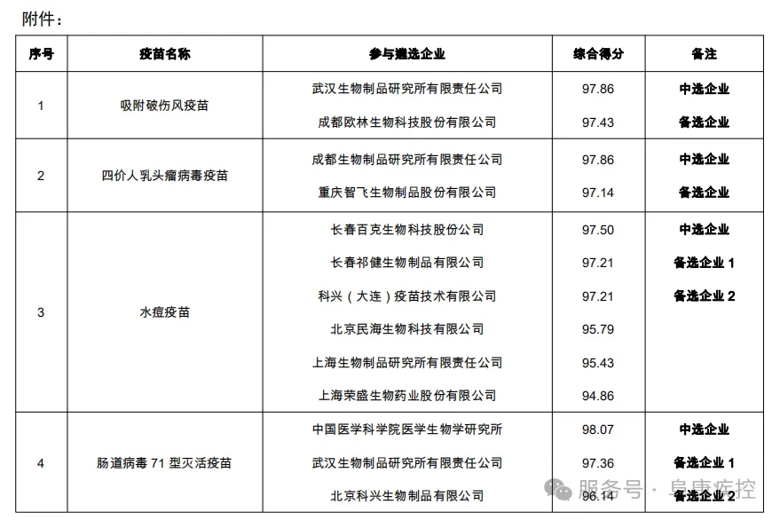 二、疫苗遴选结果公示表(详见附件)