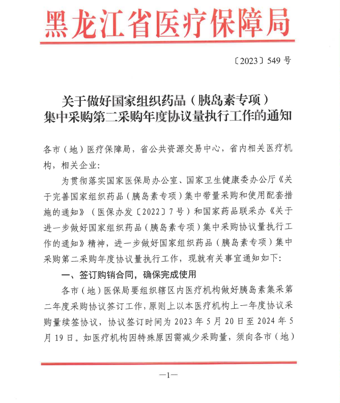 为贯彻落实国家医保局办公室、国家卫生健康委办公厅《关于完善国家组织药品(胰岛素专项)集中带量采购和使用配套措施的通知》(医保办发〔2022〕7号)和国家药品联采办《关于进一步做好国家组织药品(胰岛素专项)集中采购协议量执行工作的通知》精神,进一步做好国家组织药品(胰岛素专项)集中