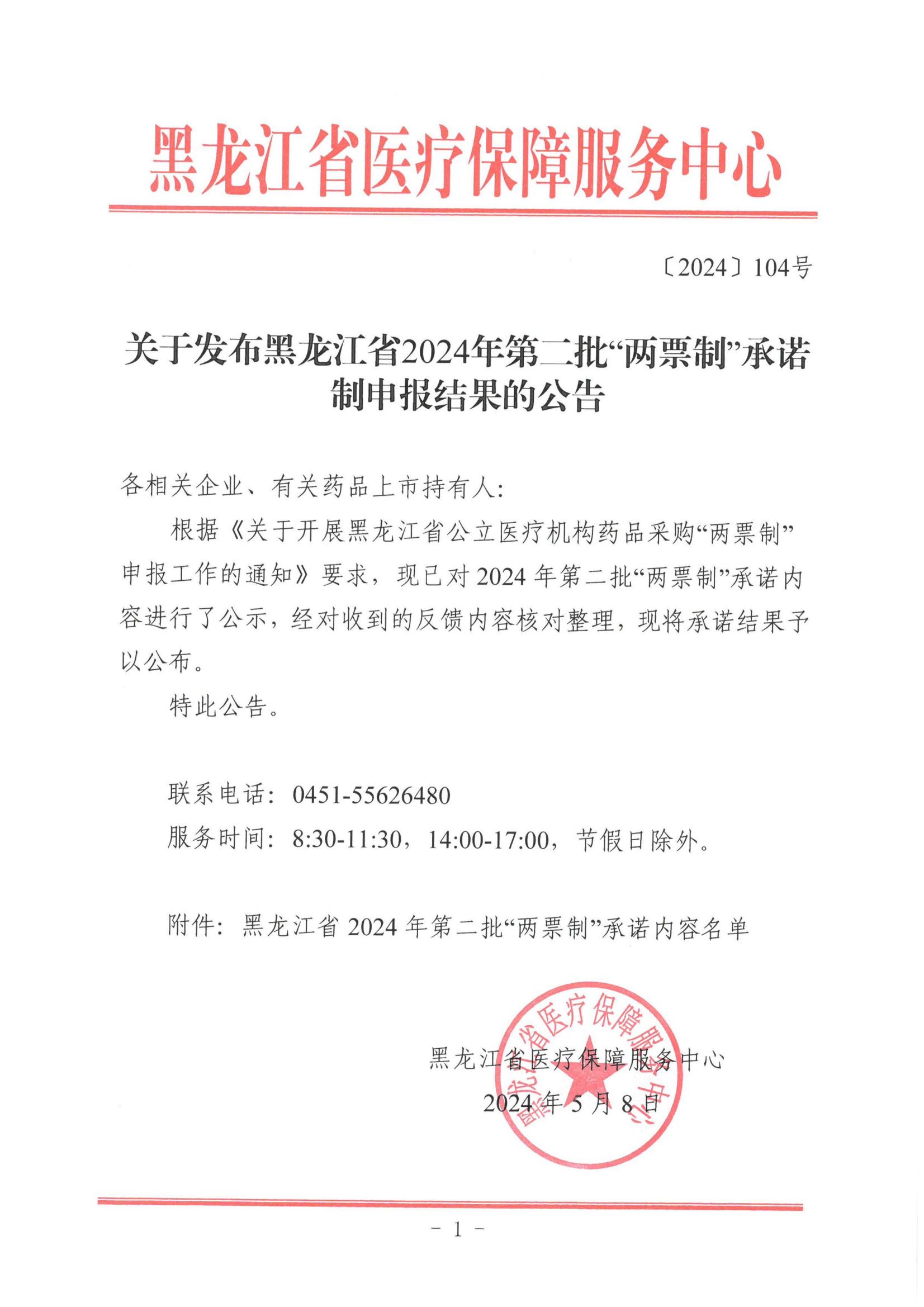 【黑龙江】关于发布黑龙江省2024年第二批“两票制”承诺制申报结果的公告