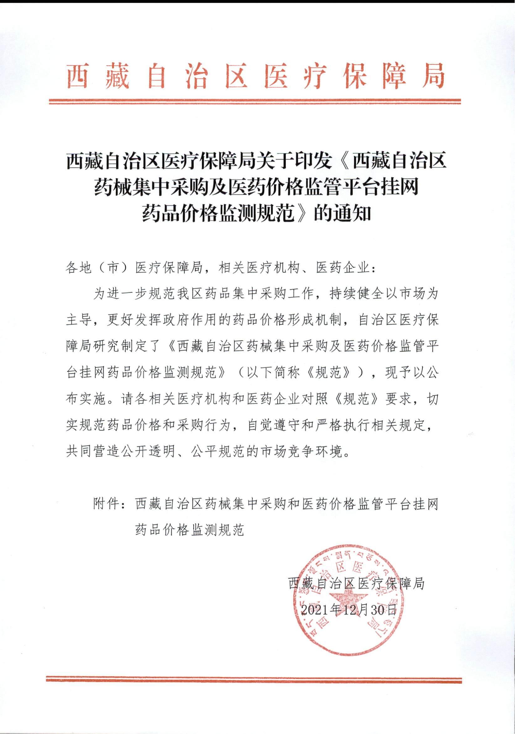 【西藏】西藏自治区医疗保障局关于印发《西藏自治区药械集中采购及医药价格监管平台挂网药品价格监测规范》的通知
