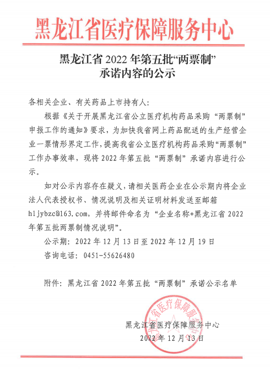 附件:黑龙江省2022年第五批"两票制"承诺公示名单
