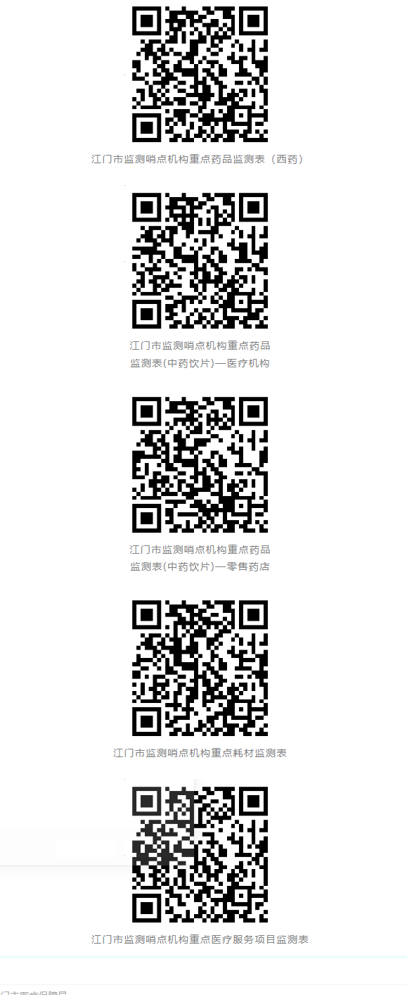 根据《江门市医药价格监测与发布制度(试行)》要求,现公布我市2025年第5期哨点医药机构重点药品、医用耗材和医疗服务价格信息(详见附件),采集整理数据截至2025年5月10日。(请长按识别以下二维码对应查看)。