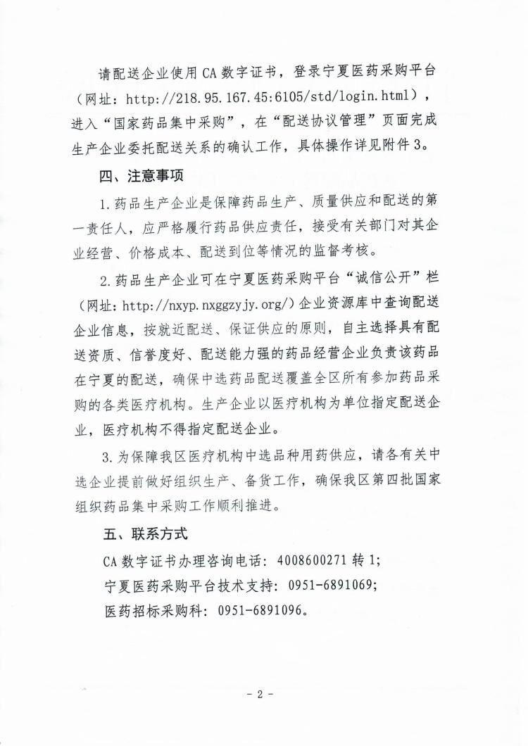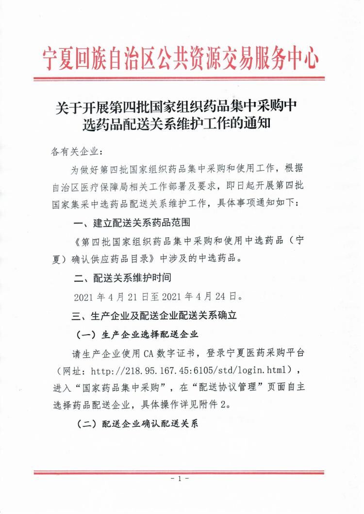 【宁夏】2021年宁夏自治区关于开展第四批国家组织药品集中采购中选药品配送关系维护工作的通知